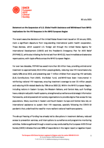 Statement on the Suspension of U.S. Global Health Assistance and Withdrawal from WHO- Implications for the HIV Response in the WHO European Region Дарья Микулич2025-07-31T15:23:12+03:0031.07.2025|Нет комментариев Оставить комментарий Отменить ответComment Save my name, email, and website in this browser for the next time I comment. Δ